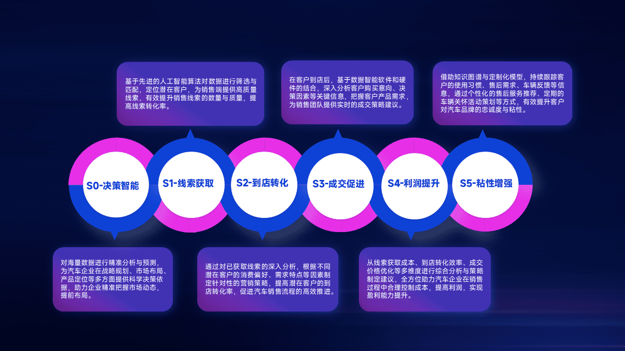 通过拓宽潜在客户来源、、、、优化线索分配并提高到店转化率,,,以增强销售效率。。。同时,,,利用线索数据不断优化分析模型,,,,有效提升转化率,,,扩大营销影响力。。。